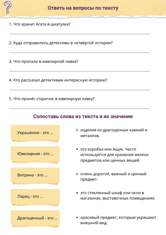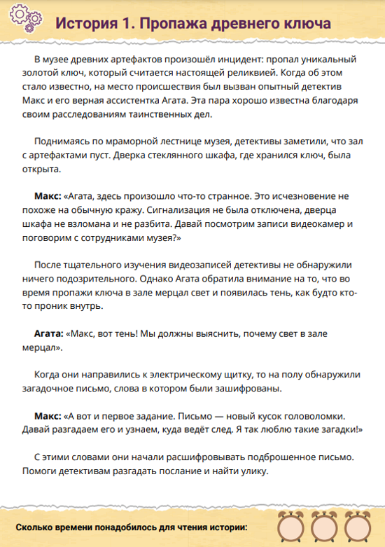 С помощью миссий в тренажёре ребёнок повысит скорость чтения текста, научится выделять главную мысль, отвечать на вопросы по тексту и готовить пересказ. А также познакомится с разными героями и их историями.