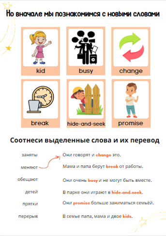 - Повторит старую и сформируют новую лексику по темам историй