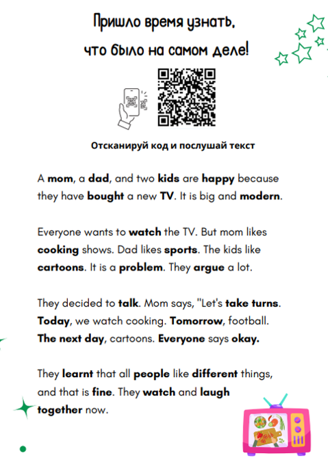 В тренажёре по чтению “Let's read a funny story” мы подготовили для вас 10 интересных рассказов, которые вы сможете прослышать, самостоятельно прочитать и выполнить задания к ним. Игровые формы упражнений помогут сформировать навыки аудирования и чтения на английском языке, а также выучить новые слова и конструкции.