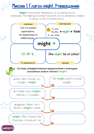 В каждой миссии — интересные и полезные задания, которые помогут закрепить знания по теме «модальные глаголы в английском языке» и научат использовать грамматические конструкции в разных ситуациях.