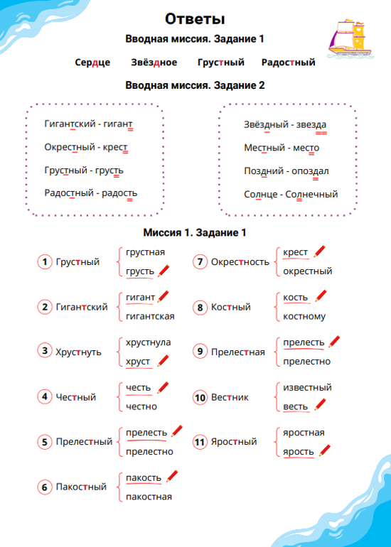 В тренажёре «Непроизносимые согласные» ребёнка ждут 12 увлекательных миссий, каждая из которых включает в себя важные правила и интересные задания для отработки полученных знаний. Отследить свой прогресс ребёнку поможет карта успеха.