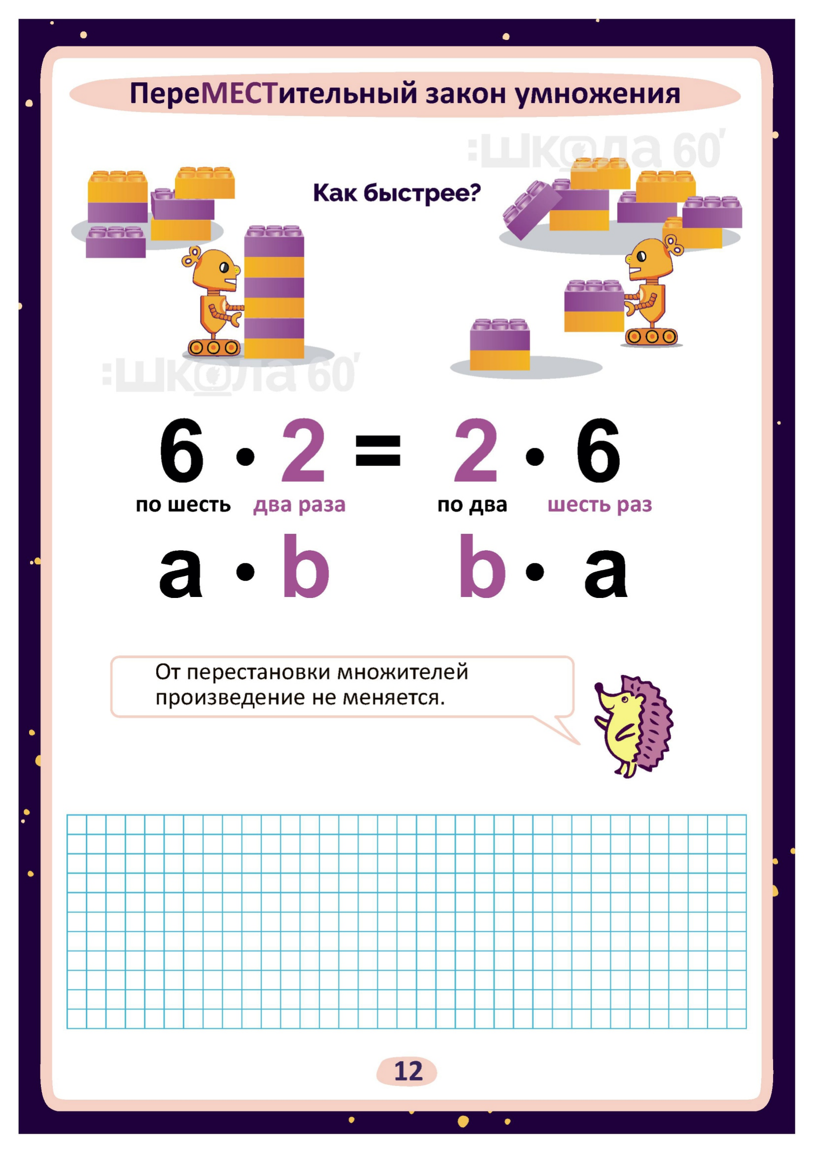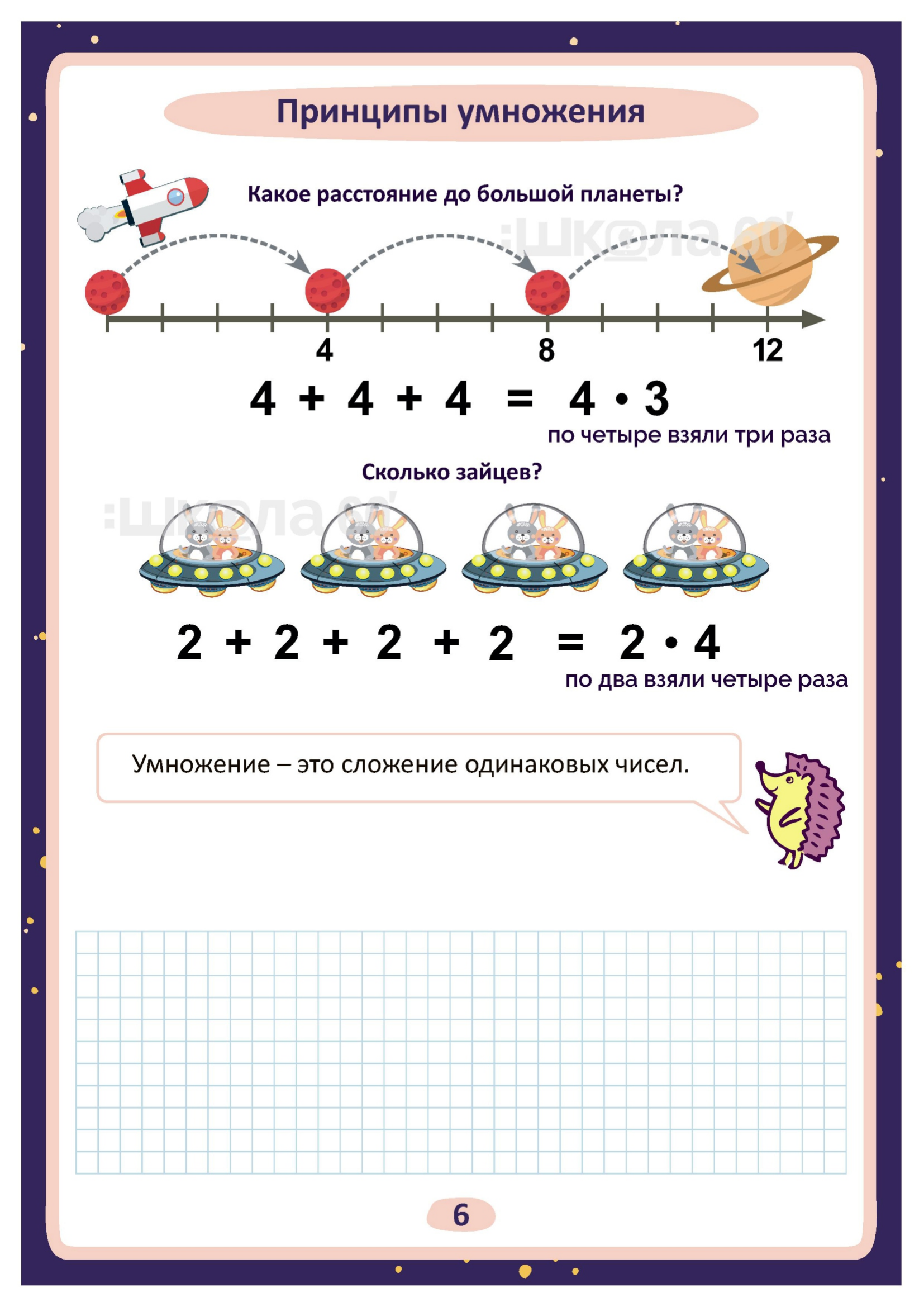 Графические авторские cхемы, которые позволяют наглядно увидеть тему, систематизировать, разобраться в ней, запомнить и конечно, легко повторить в конце четверти перед контрольными или аттестацией. Какие темы входят в помогаторы:4 класс Название компонентов и результата сложения Название компонентов и результата вычитания Выражения с переменной Решение уравнений Принципы умножения Название компонентов умножения Название компонентов деления Связь деления и умножения Умножение на 1 Умножение на 0 Перестановка множителей Таблица умножения - ракета Умножение суммы на число Деление с остатком Порядок выполнения действий Цена. Количество. Стоимость Масса. Количество Больше / меньше НА Больше / меньше В несколько раз Периметр Площадь Дроби Единицы времени Единицы массы Единицы длины Таблица разрядов и классов Увеличение и уменьшение чисел в 10 раз, в 100 раз Представление многозначных чисел в виде суммы разрядных слагаемых. Сравнение трёхзначных чисел Сложение и вычитание в столбик Умножение в столбик Деление в столбик Скорость. Время. Расстояние