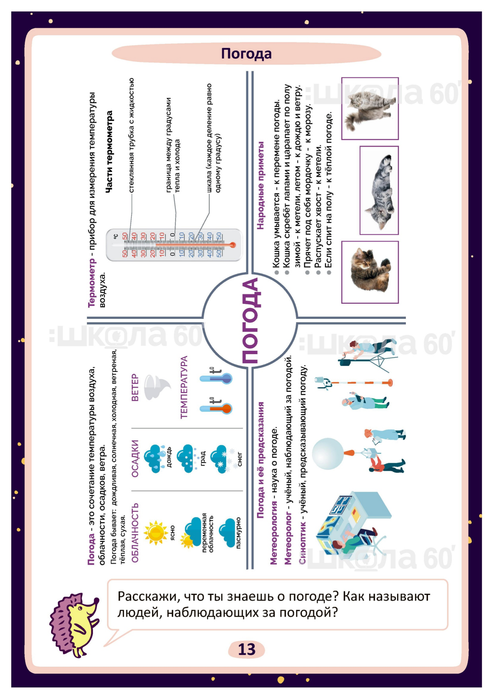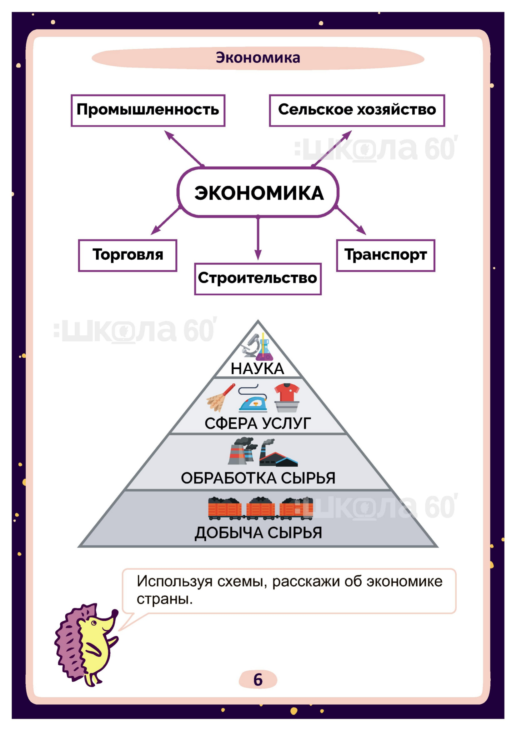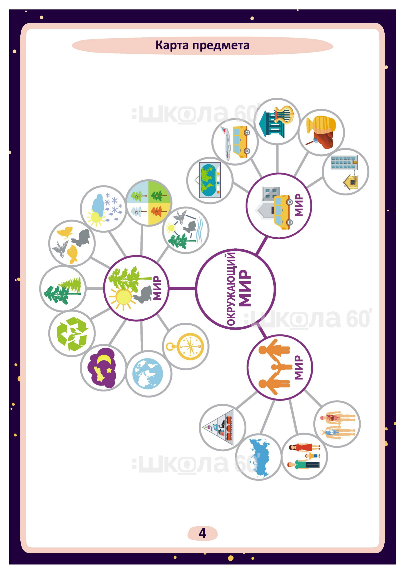 Графические авторские cхемы, которые позволяют наглядно увидеть тему, систематизировать, разобраться в ней, запомнить и конечно, легко повторить в конце четверти перед контрольными или аттестацией. Какие темы входят в помогаторы:2 класс Карта предмета Наша страна. Гимн, герб и флаг России Экономика Культура поведения Строение тела Природа живая и неживая Связь живой и неживой природы. Невидимые нити Сезоны и сезонные явления природы. Времена года Погода Планета Земля. Суша Планета Земля. Вода Звёзды Ориентирование на местности Растения. Классификация и строение Растения. Уход за комнатными растениями Животные. Классификация Красная книга Город и село Наша страна Россия Наша страна Россия. Москва Наша страна Россия. Санкт-Петербург Культура и образование Материалы. Глина Транспорт Правила безопасности на дороге Действие при пожаре Правила безопасности на природе Опасности вокруг нас