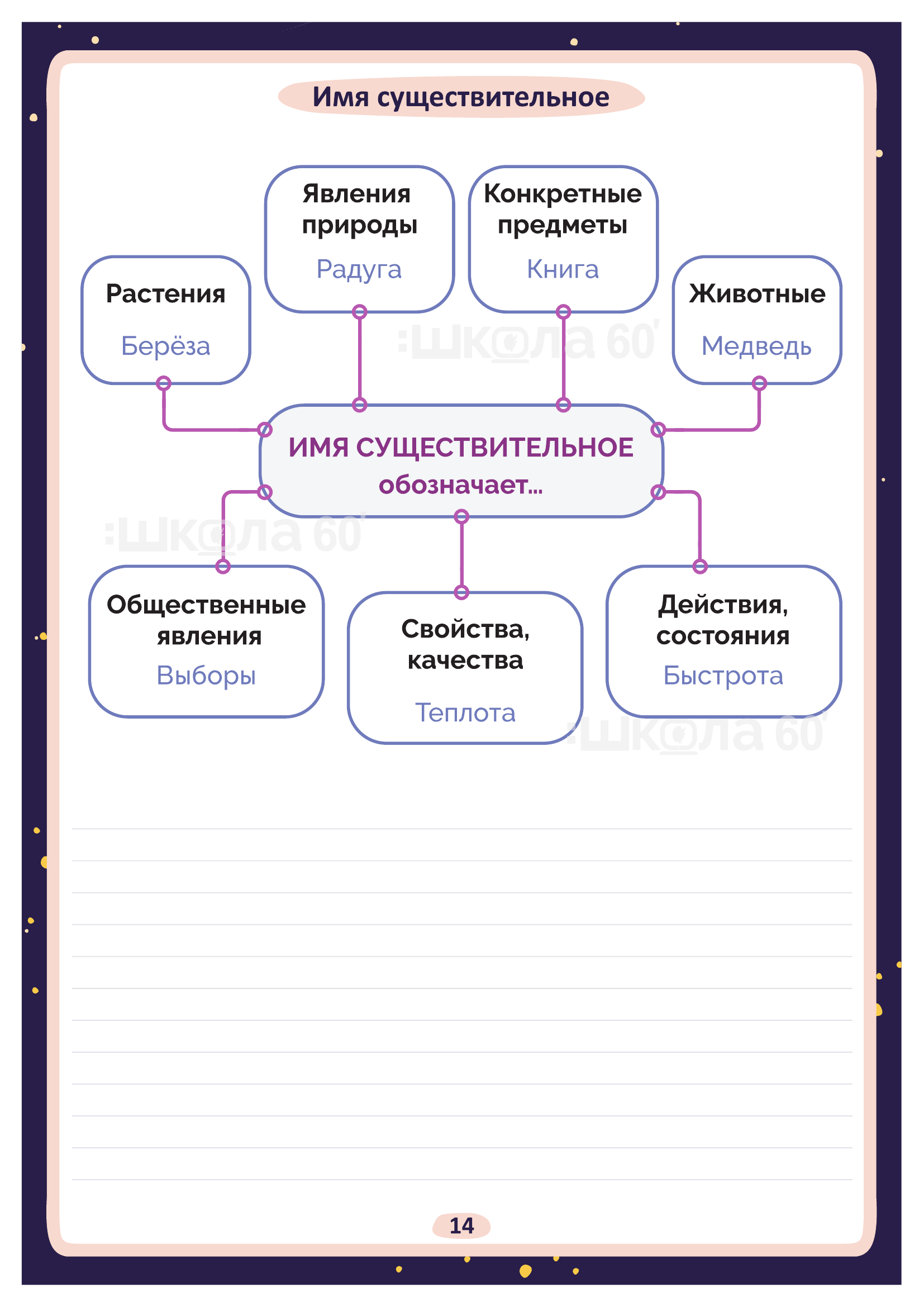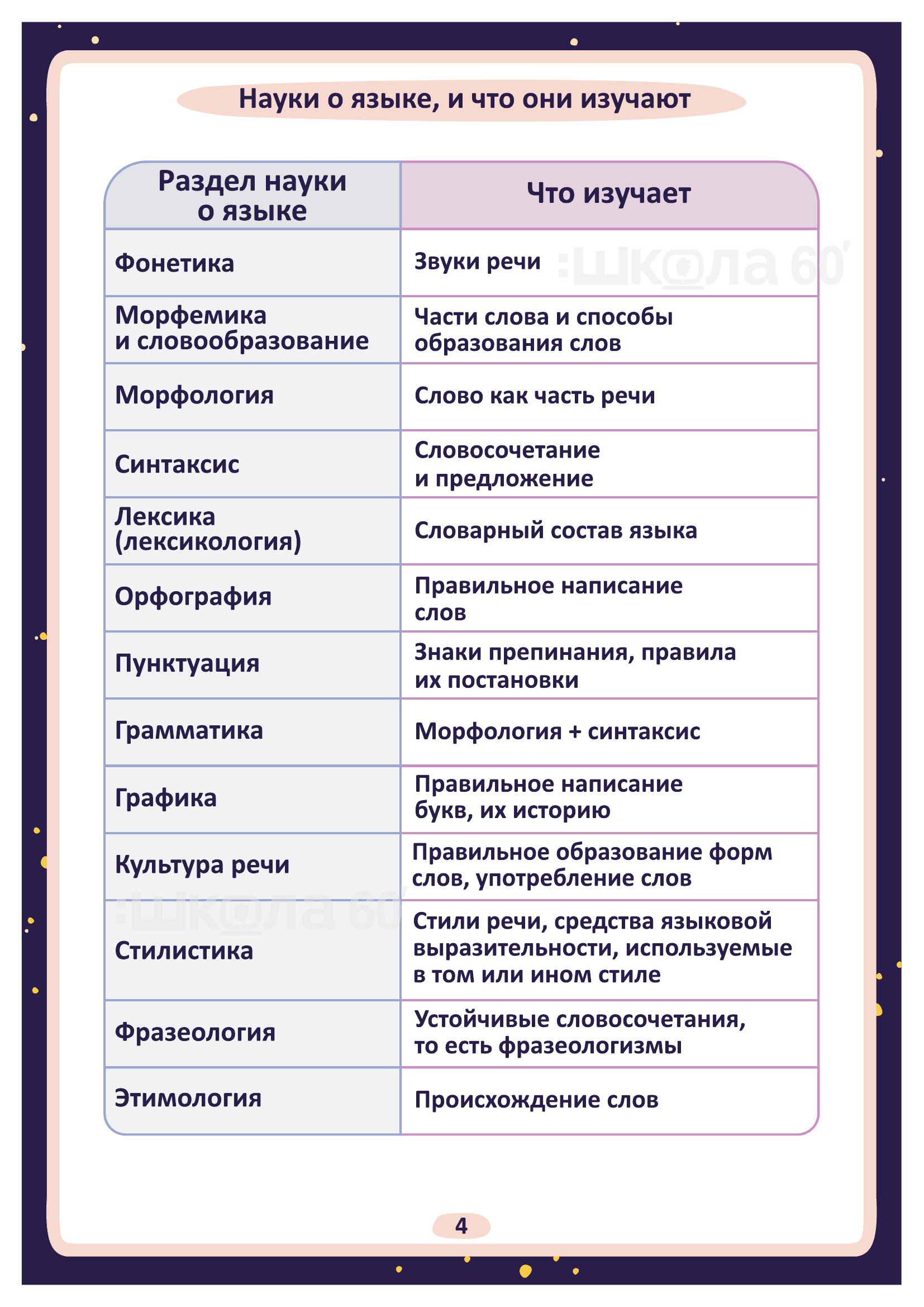 Графические авторские cхемы, которые позволяют наглядно увидеть тему, систематизировать, разобраться в ней, запомнить и конечно, легко повторить в конце четверти перед контрольными или аттестацией. Какие темы входят в помогаторы:6 класс Науки о языке и что они изучают Пунктуация. Запятая Пунктуация. Двоеточие Приставки Орфограммы. БУКВЫ о - ё после шипящих Орфограммы. Корни с чередованием гласных о - а, е - и Текст Схема написания сочинения Морфология Синтаксис Имя существительное Несклоняемые имена существительные Имена существительные общего рода Словообразование имён существительных Правописание сложных имён существительных Сравнительные обороты Орфоэпические нормы Культура речи Стили речи Разряды имён прилагательных Правописание сложных имён прилагательных Правописание -н-, -нн- в суффиксах сложных имён прилагательных Средства связи предложений в тексте Параллельная связь Вид глагола Буквы Ы – И в корне после приставок Прилагательное и причастие Причастие и глагол Причастный оборот Деепричастный оборот Причастие Морфологический разбор причастия Страдательные причастия Страдательные и действительные причастия НЕ с причастиями НЕ с деепричастиями Образование деепричастий Имя числительное Простые числительные Сложные числительные Составные числительные Склонение имён числительных Собирательные числительные Морфологический разбор имени числительного Имя числительное Местоимение Возвратное местоимение Притяжательные местоимения Указательные местоимения Определительные местоимения Отрицательные местоимения Неопределённые местоимения Образование неопределённых местоимений Морфологический разбор местоимения Виды разборов