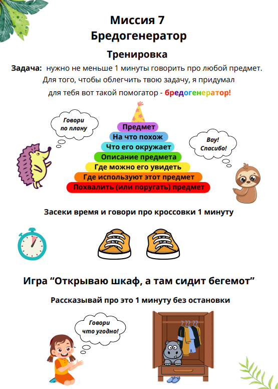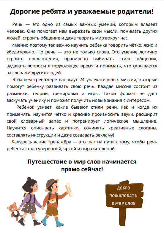 В тренажёре 24 миссии, которые помогут ребёнку развивать свою речь. Каждая миссия состоит из разминки, теории, тренировки и игры.