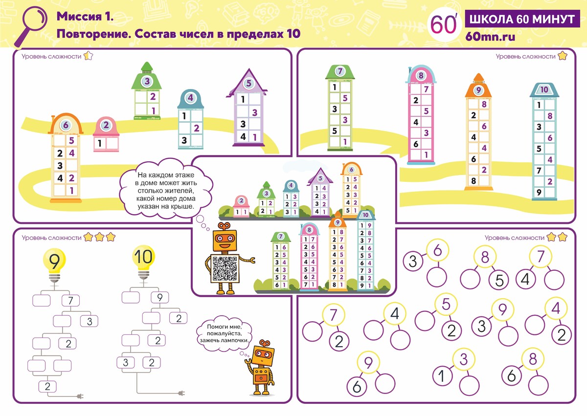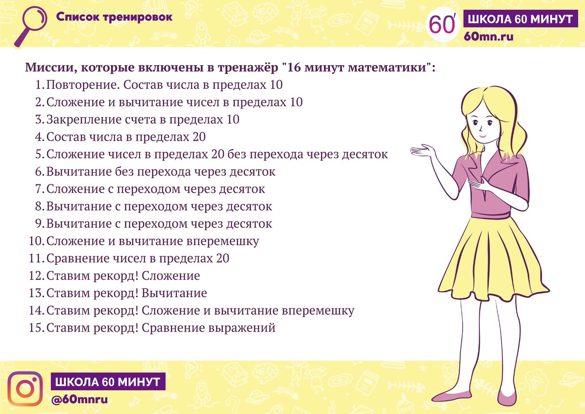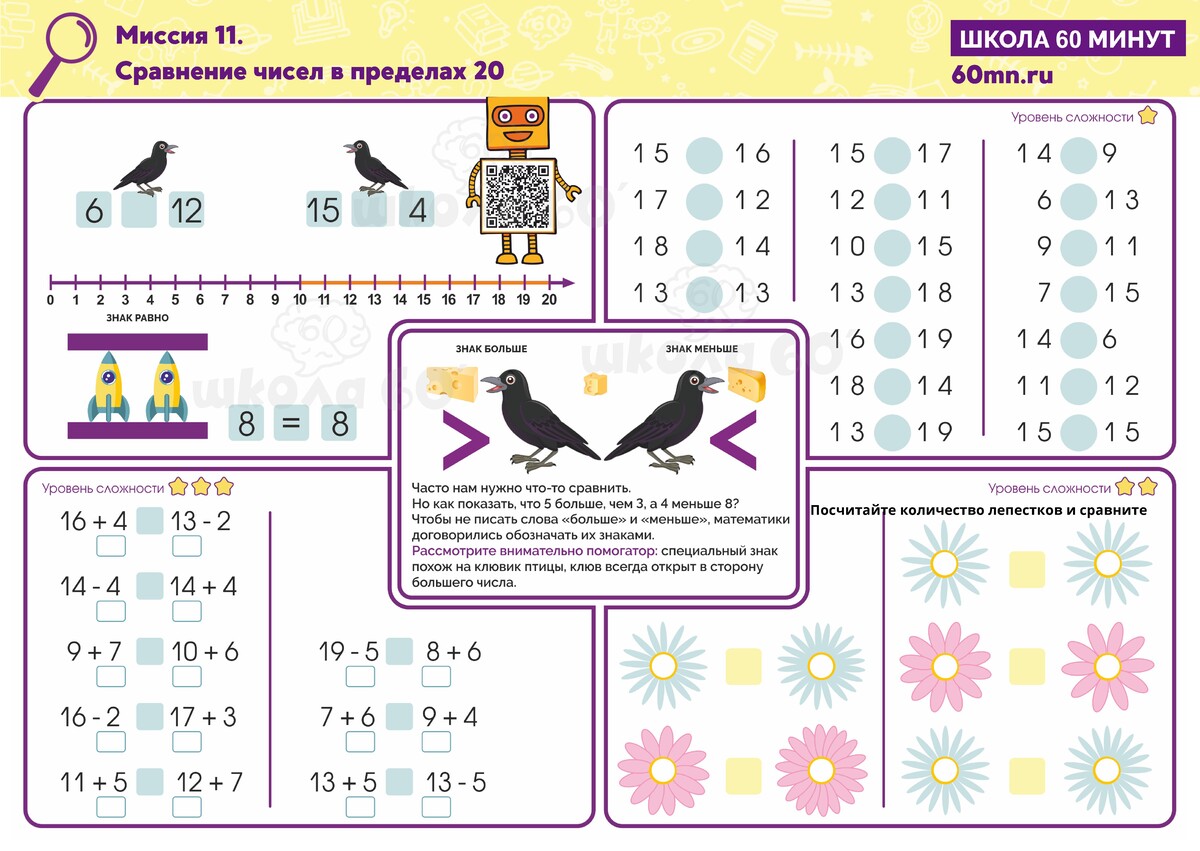 - отработает сложение и вычитание чисел в пределах 20 без перехода через десяток