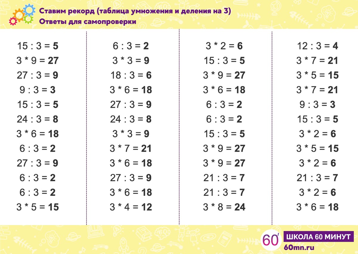 - Умножение и деление с числом 3