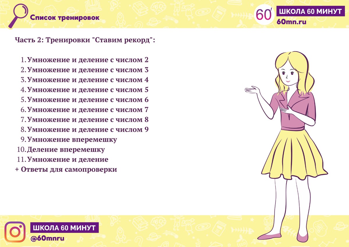 - отработает навык умножения на каждое число в отдельносит