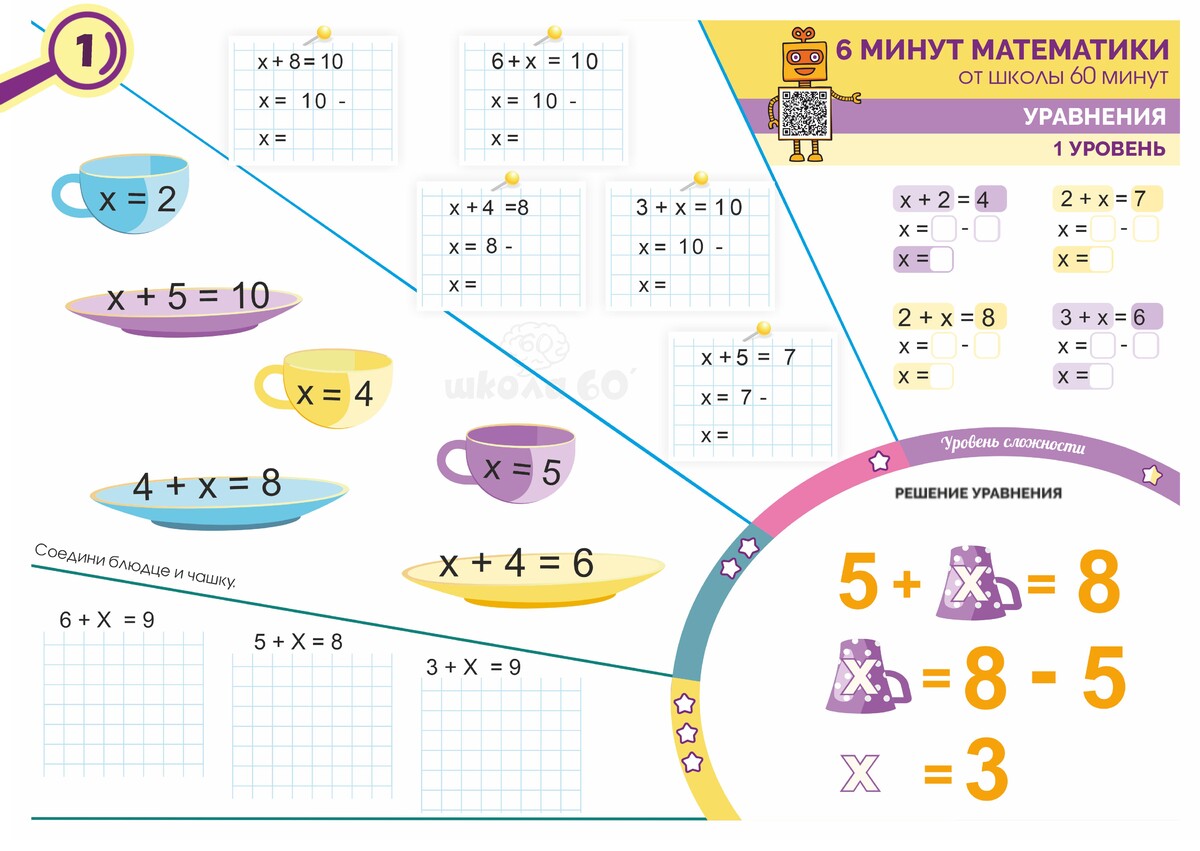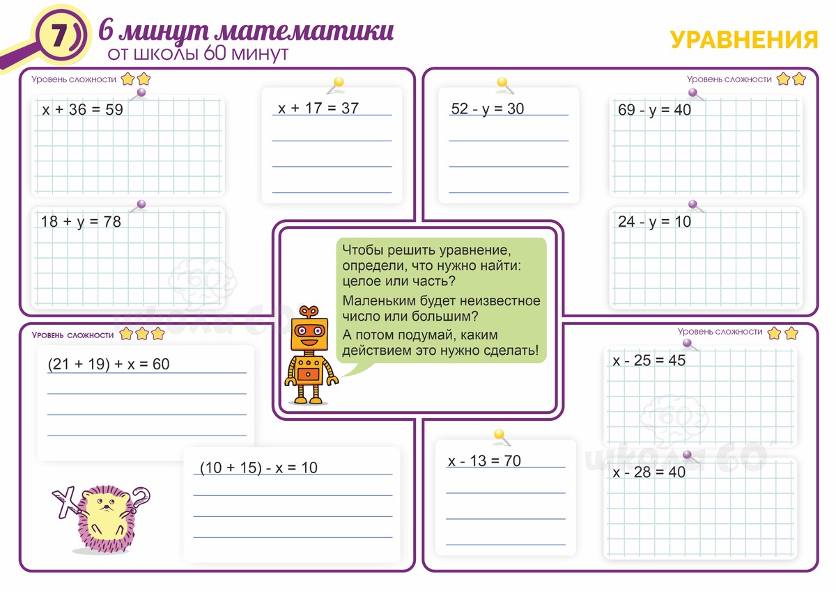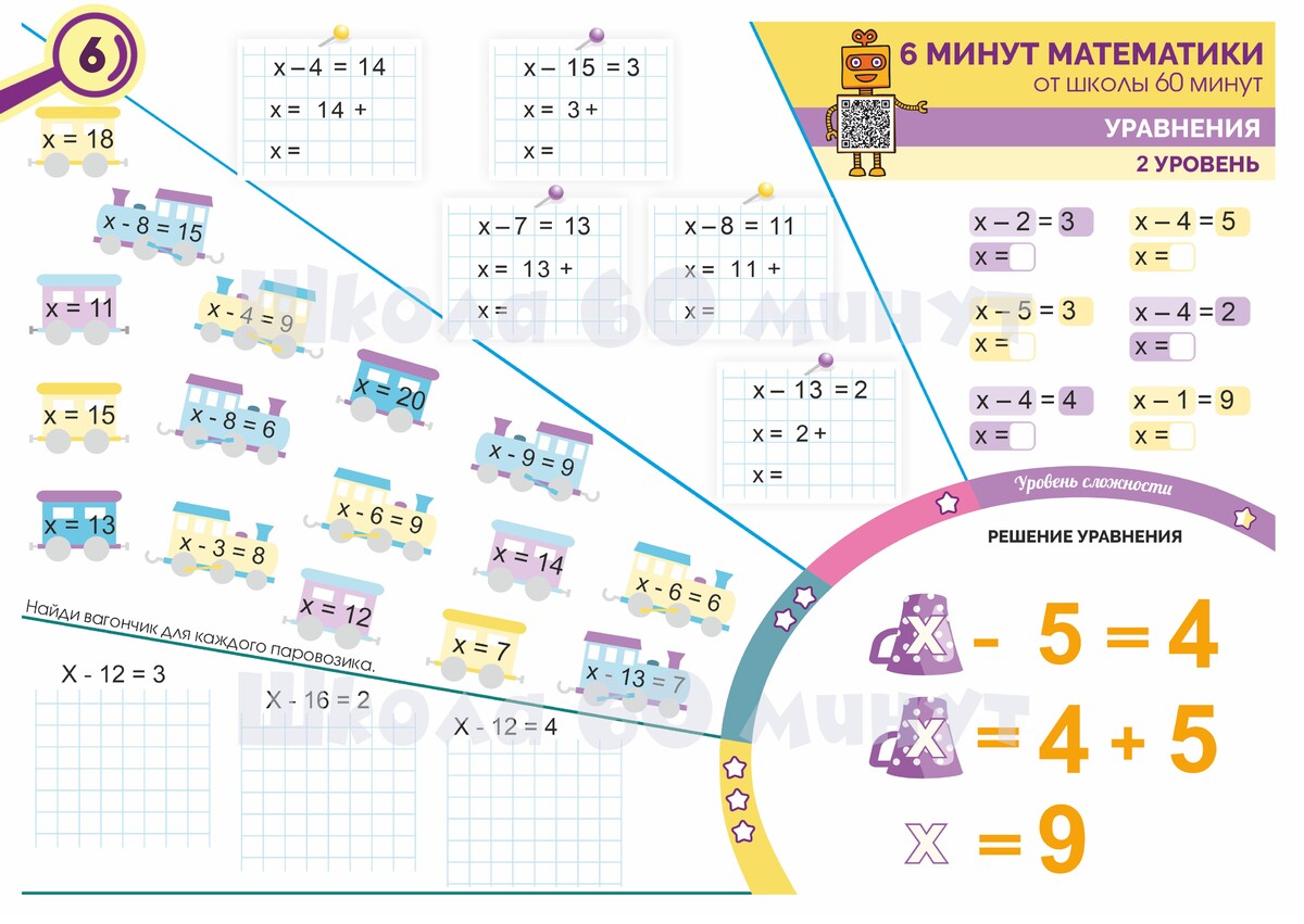 - отточит навыки решения уравнений от самых базовых и простых до сложных