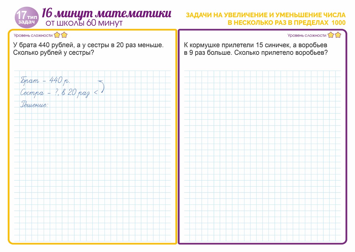 17 тип - Задачи на увеличение и уменьшение числа в несколько раз